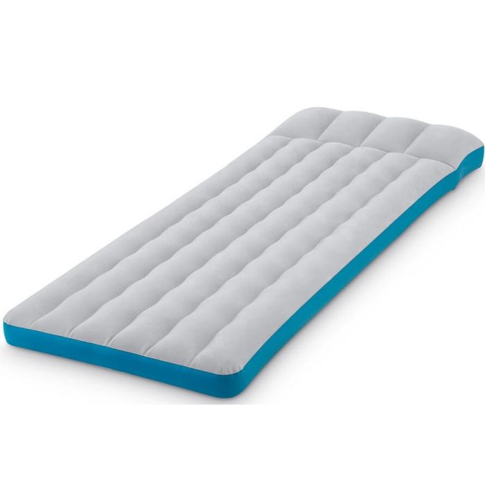 De Intex Camping Mat is een goede keuze voor een kampeervakantie. Door het lichte gewicht (2,2 kg) en compacte pakmaat is het een ideaal luchtbed om mee te nemen naar de camping. De bovenkant is gemaakt van zacht materiaal, fijn om op te liggen, de onderkant is extra verstevigd en daarmee goed bestand tegen perforaties. Het hoofdeinde is extra hoog zodat een extra kussen meenemen overbodig is.