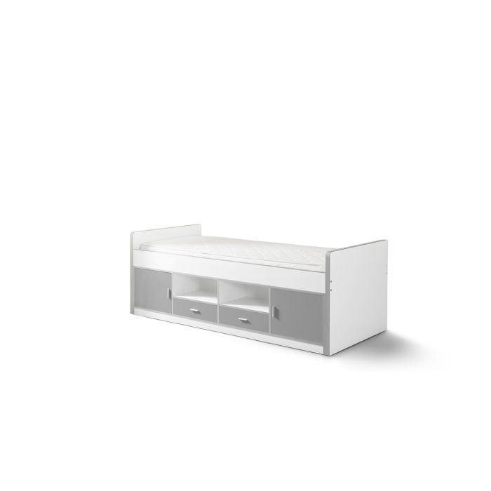 | Specificaties | Material: Combination of particle board and metal Finish: Melamine Colour: GREY Slat base included: No Recommended Slatbase: Frame Product style: Contemporary Maximum mattress thickness: No maximum height Maximum weight in KG: 75 Minimum age: 4 years FSC Certified: Yes Assembly time in minutes: 120 Length assembled in MM: 2070 Width assembled in MM: 975 Height assembled in MM: 785 |
