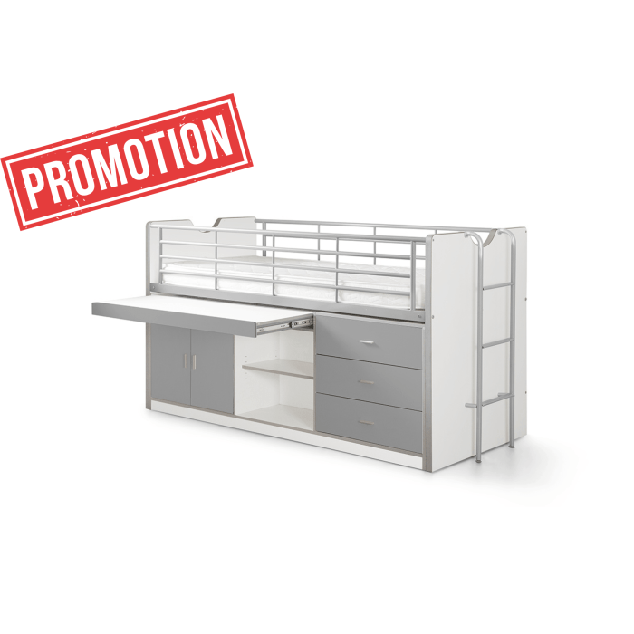| Specificaties | Material: Combination of particle board and metal Finish: Melamine Colour: GREY Slat base included: Yes Product style: Contemporary Maximum mattress thickness: 16 Maximum weight in KG: 75 Minimum age: 6 years Certificates: EN747 1&2 FSC Certified: Yes Assembly time in minutes: 120 Length assembled in MM: 2070 Width assembled in MM: 960 Height assembled in MM: 1160 |