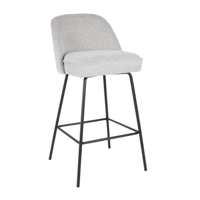 Barkruk Lucy is elegant, stijlvol en tijdloos. Ze heeft een ronde gevoerde zitting, een bekleding van textuurstof en een zwarte metalen onderstel.