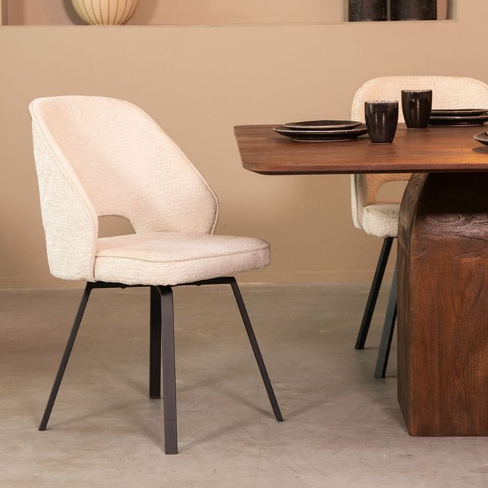 Omschrijving / LABEL51 Eetkamerstoel Lewis - Crème - Fluweel