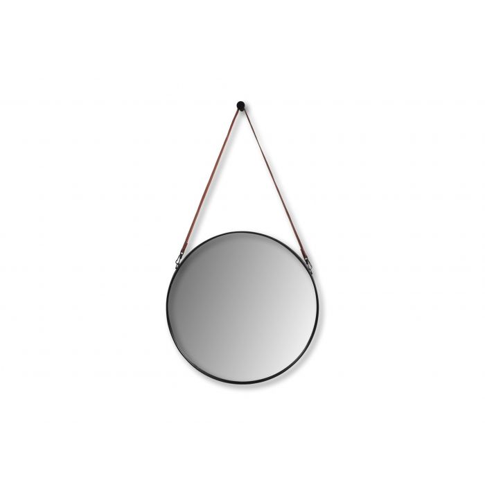 Omschrijving / Ronde wandspiegel met riem - ø60 cm - zwart/bruin