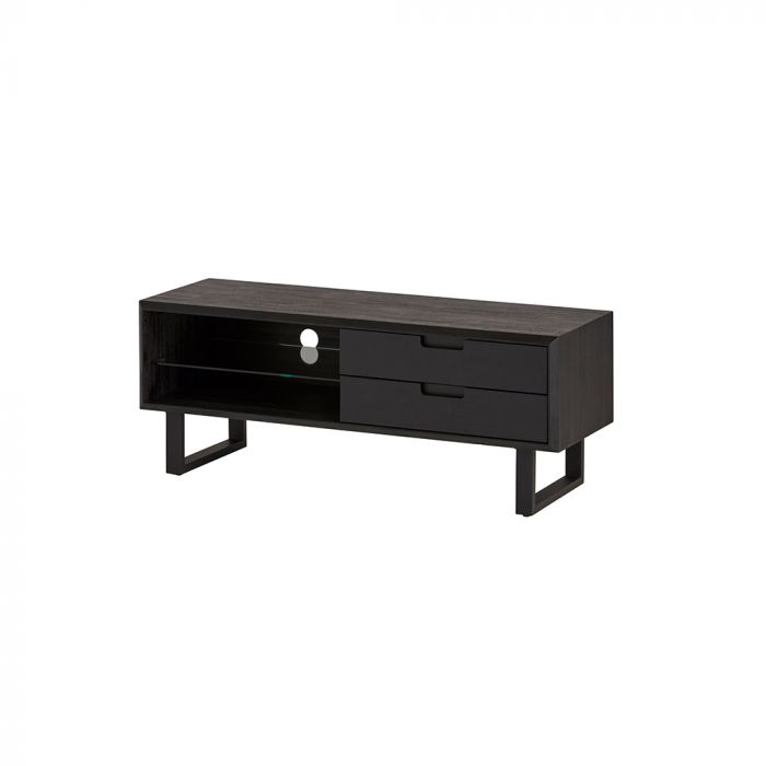 TV dressoir 130 met 2 lades en 2 open vakken met glasplaat