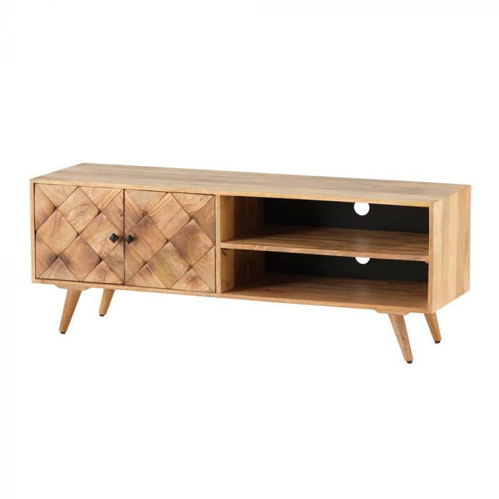 Nijwie TV dressoir 140 met 2 deuren en 2 open vakken: TV-meubel met een lengte van 140 cm, voorzien van 2 deuren en 2 open vakken.