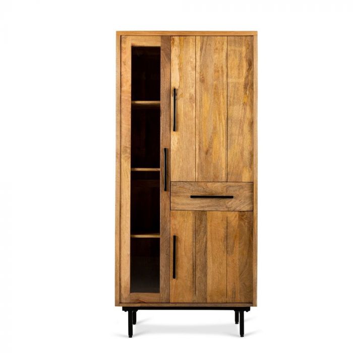 Deze Jayden Cabinet is gemaakt van strak egaal mangohout met glas gedeelte wat dit Cabinet lekker speels maakt.