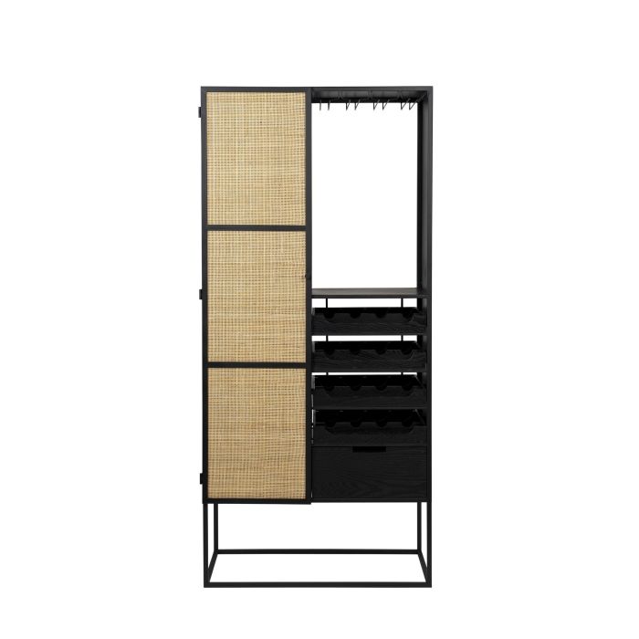Een trendy, stijlvol wijnrek met Japandi details: dat is wijnkast Guuji. De Japandi trend is Japans en Scandinavisch design gecombineerd, wat dus resulteert in een stijlvol item dat je keuken of woonkamer meteen sfeer brengt. De rattan deur heeft een magnetische sluiting met daarachter twee planken. Ook heeft de wijnkast één plank, vier lades voor je wijn en daaronder nog een extra lade. Hang in het wijnrek je favoriete wijnglazen en jouw wijnkast is compleet!